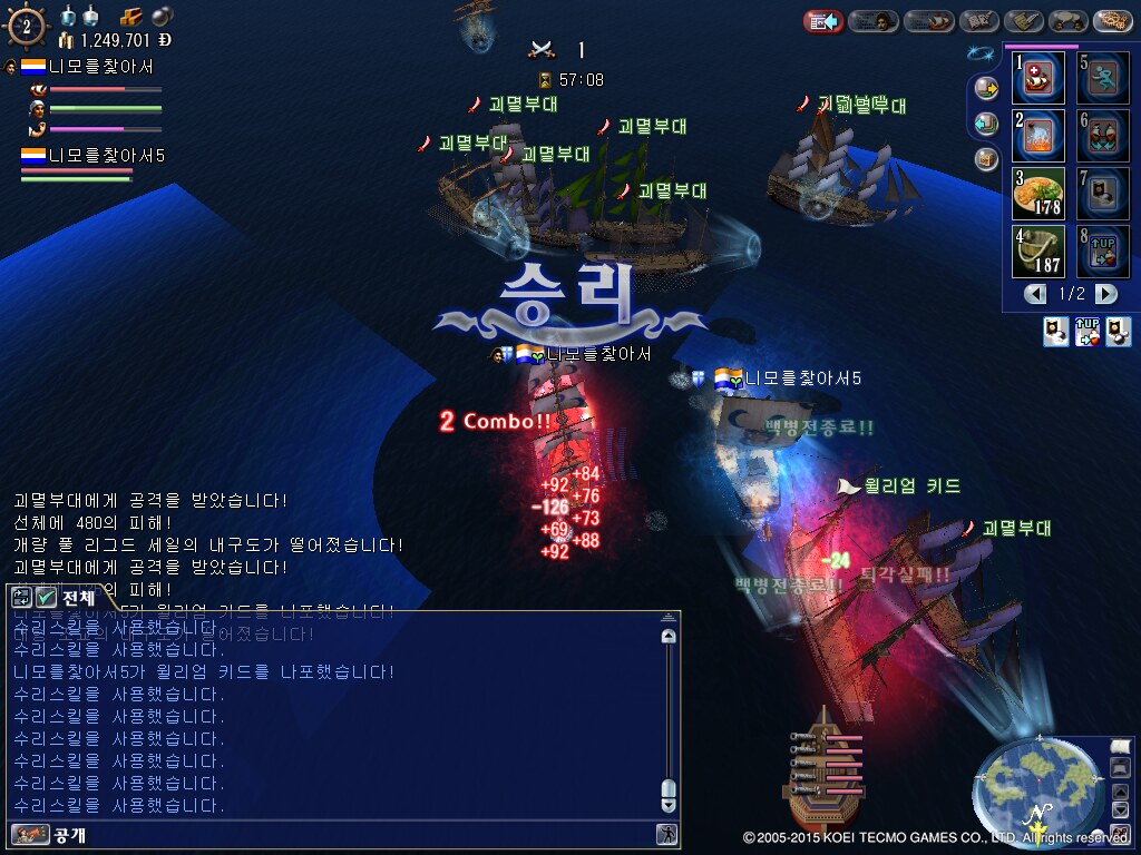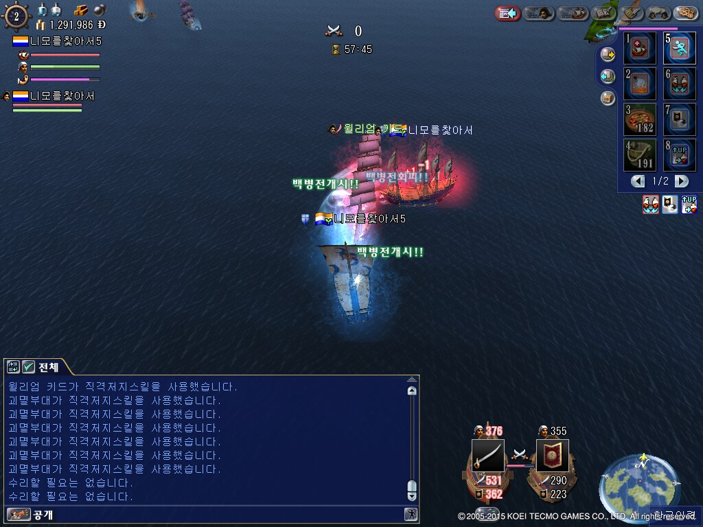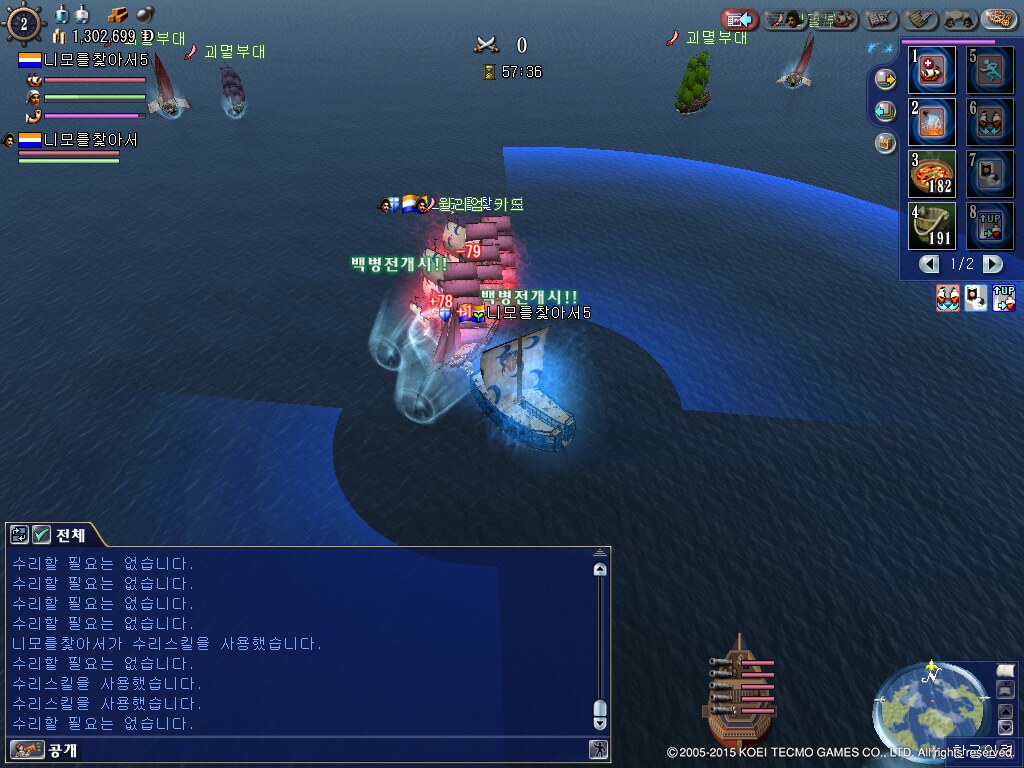 전투가 시작되면,,운전밴 그대로 직진하시고 따라가는배만 방향을 살짝 틀어주면,,