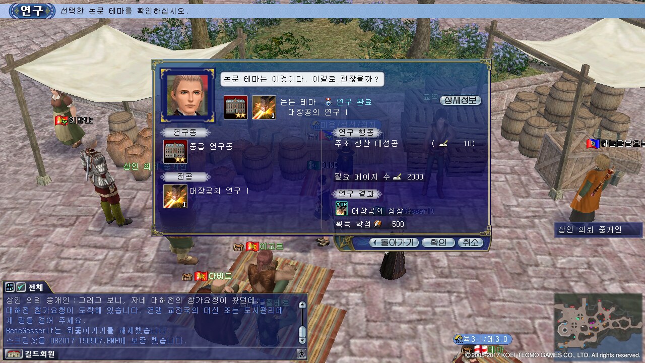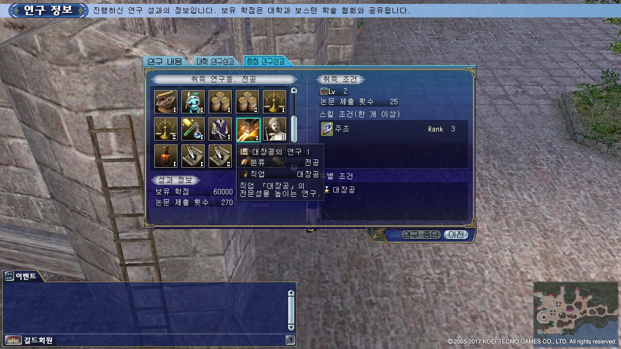 직업 또한 대장공,공예사(약제사,주류상),재봉사가 필요합니다 전직을 하셨어야 논문이 개방되니 필수요소이구요