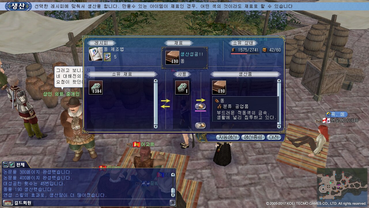 금속 제련서 레시피로 동광석1 -> 동2 (대량생산100회)시 대략 30~50회정도 대성공을 하더군요 저의 경우는