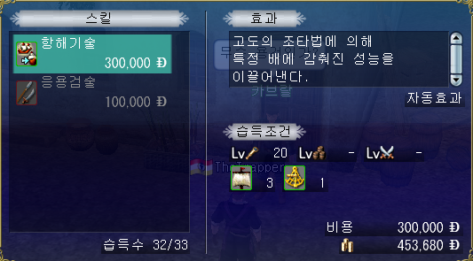 항해기술은 선박스킬이 달린 배로 항해하면 올라갑니다.