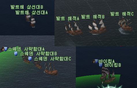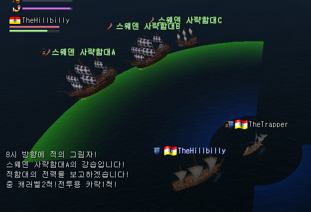 조심해야 할 몹이 있는데, 중캐러밸 2척+전투용 카락1척으로 구성된 스웨덴 사략함대입니다.