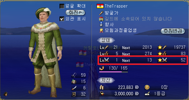 군렙 1씩, 더하면 함대 군렙 합계 2렙. 이제 해상 NPC에게 강습당하는 조건이 갖춰졌습니다.