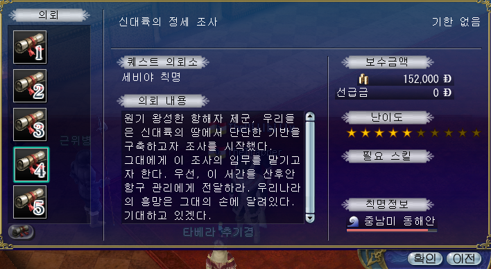칙명퀘는 일반 퀘스트와 다르게 3번째 퀘스트 칸에 받아지며, 알선서를 사용할 수 없는 대신