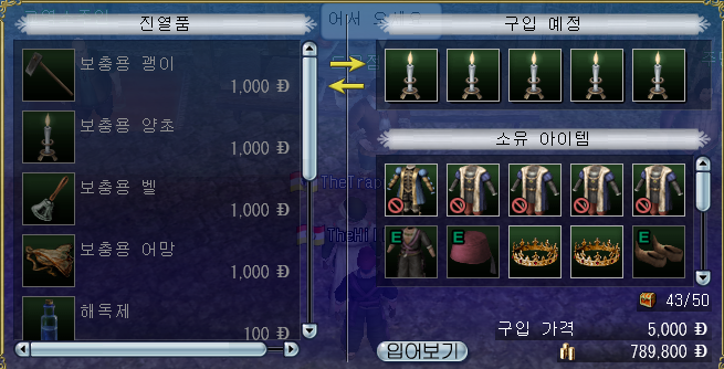 이쯤에서 전투에 필요한 소비품도 구매를 하겠습니다.