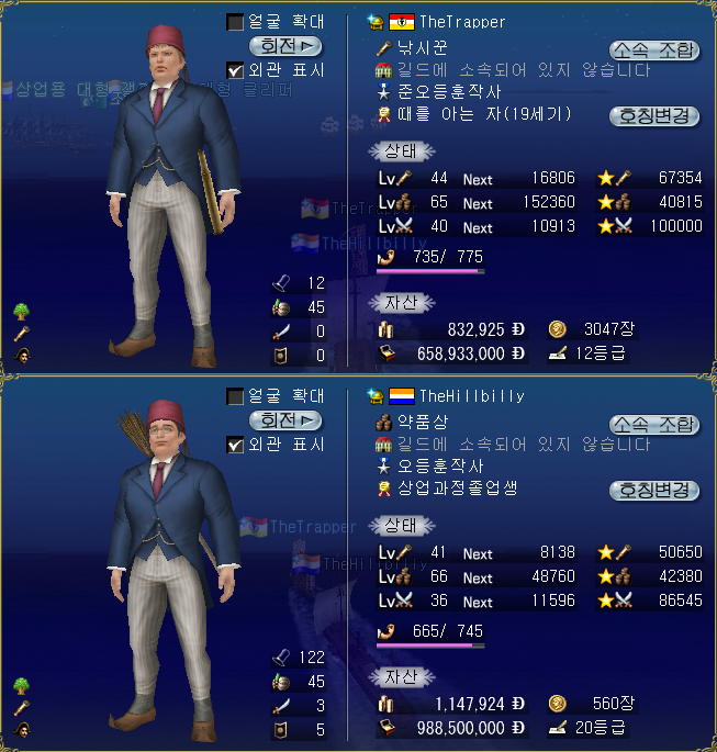 그래서 부관 렙업이 더 중요한 모험군인 캐릭을 따라오게 하고, 상인캐릭으로 운전하고 다녔습니다.