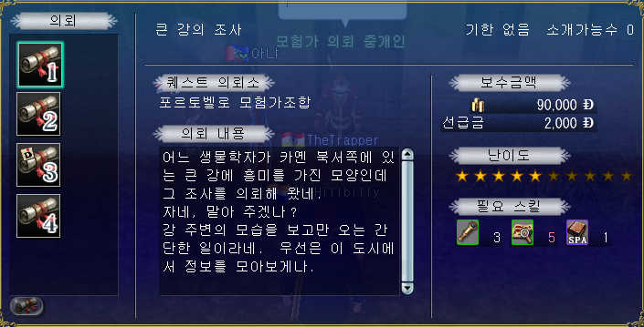 그러니 포르토벨로에서 [큰 강의 조사] 퀘스트를 받아서 수행하시기 바랍니다.