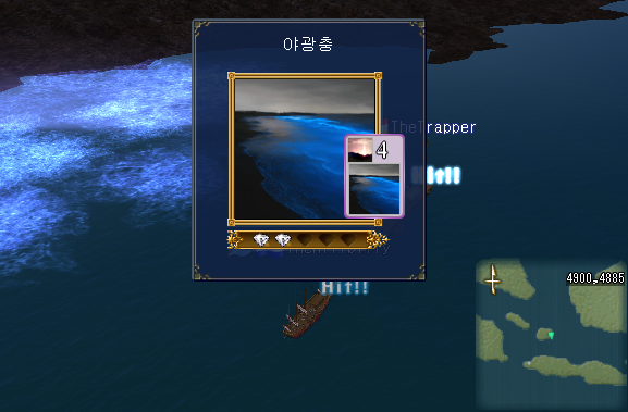 ※ 자바해 해역조사 하실 때 그림의 좌표에서 기상현상 [야광충]을 발견하여 조사를 완료하세요.