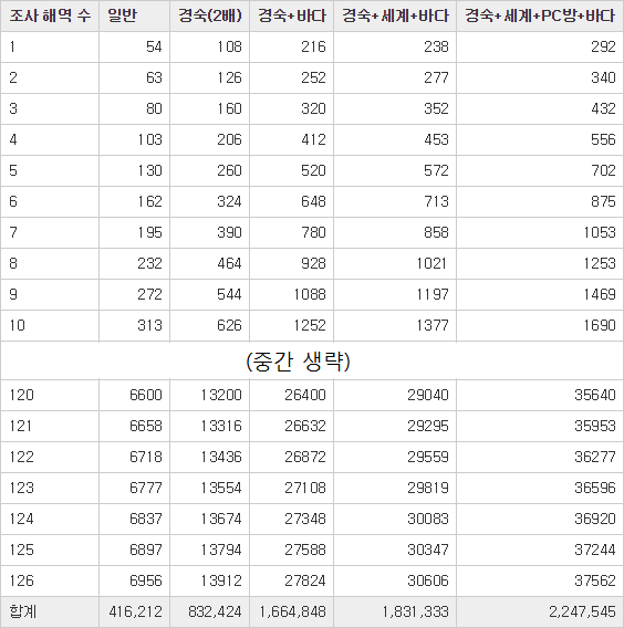 해역조사 후반부 경험치에 세계 타롯으로 20% 보너스가 붙으면 그것도 나름 큰 보너스니 세계 타롯도 써주시고,