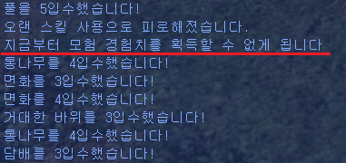 그리고 약 1시간 정도 채집을 하면(600회) 그 뒤에는 더 이상 경험치를 먹지 못합니다.