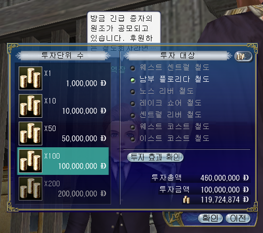 철도 회사 중역이 나오면 투자 -> 중역과 대화 -> 투자하는 방법으로 하루 2번 투자가 됩니다.