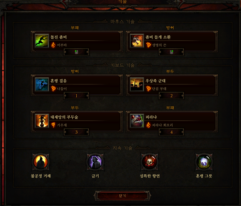 - 물리소환부두 (쿠크리 보유전) - 들개(생명의끈)은 우카프 착용중이라 들어간거고 공포(악몽의상) 사용하셔도 됨