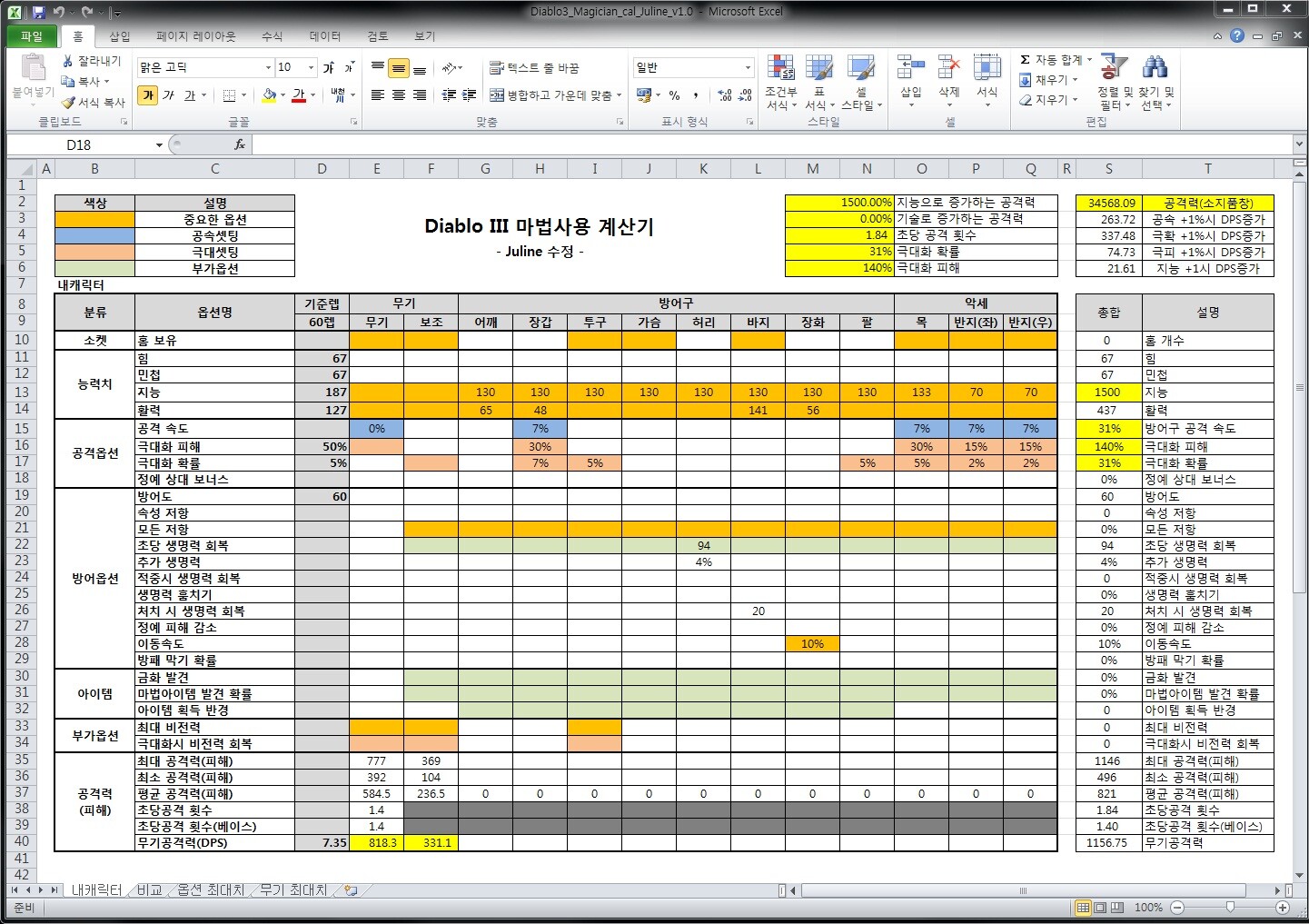 개인적으로 이것저것 분석하는것에 취미가 있는지라 정리해본 마법사용 엑셀파일을 하나 올려봅니다.