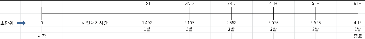 2. 1사이클은 1 2 3 3 2 1 으로서 에폭이 발사된시간부터 에폭의 마지막발이 나가는순간의 시간으로 하겠습니다.