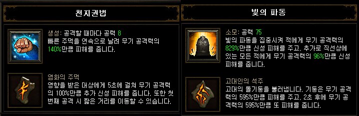 주무기 : 창철퇴 도끼 도검 주먹무기 단도 + 극피울분 + 공속울분 +태양수호자 모두사용 .