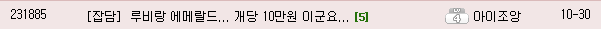재미있는 사실은, 김밥옆구리다는 언젠가 인벤에서 '구공회템을 사서 세팅해보고 다시 다 팔아서 이득본 게 없다'는 얘기(댓글)를 한 기억이 내게 있다는 것이다. 운전수도의 아버지는 막상 구공회템으로 재미를 못 봤다는 것이니 이 어찌 아이러니한 상황이 아니라 할 수 있을까.