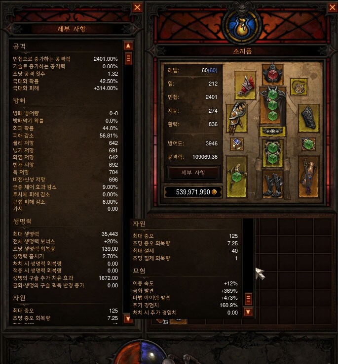 신경써야 할부분은 위에서 쓴 것과 같이 무기의 멕뎀, 극피량, 민첩, 반지나 목걸이의 피해량 등등이 중요합니다.