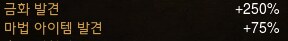 형이알아봤는데 공격무기빼고는 모든 아이템들이 금화발견 옵션이 붙을수있다
