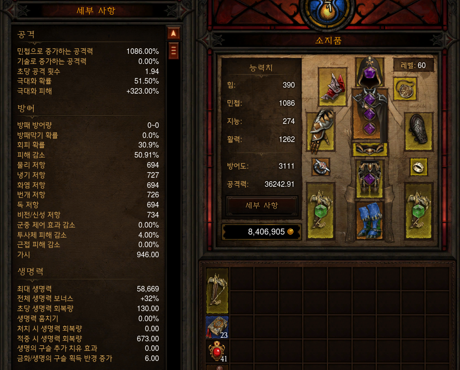 템 세팅(극확,극피,공속,절제,적생,저항 등등)에 따른 자신의 스킬 선택과 운용 능력에 따라