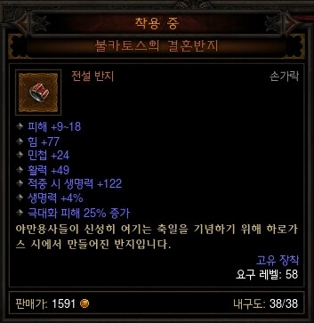 피해 - 붙으면 좋다. 필자의 반지는 공격력을 2000~4000정도 차이나게할정도다