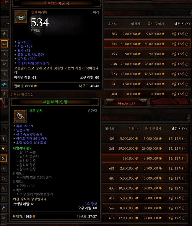 업데이트가 되면서 전설과 세트 아이템의 능력치가 어마어마하게 상승이 되어