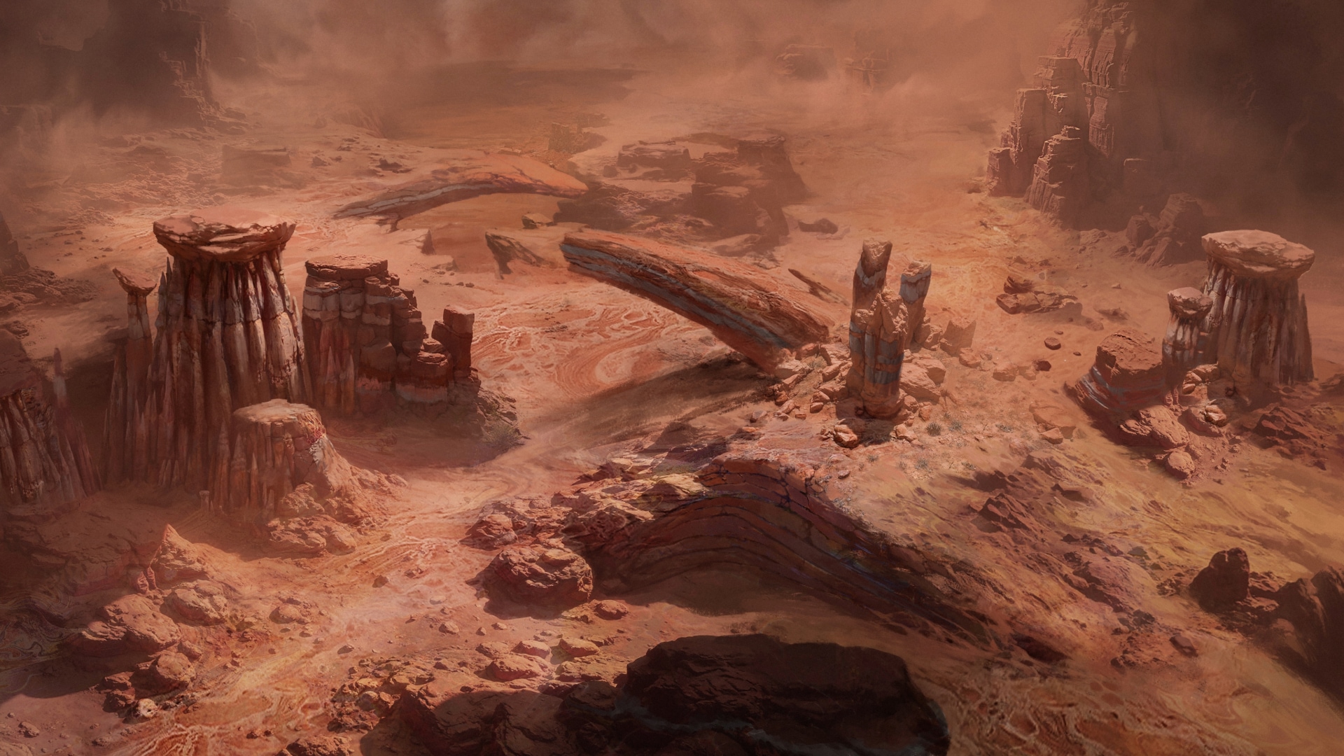 이 험준한 황무지는 사나운 야생 동물들, 즉 뿔늑대, 사막사마귀, 들끓는 떼, 그리고 사악한 독수리들의 서식지일 뿐만 아니라, 고통의 악마들이 자신들만의 잔혹한 영역을 구축하기 시작한 곳이기도 합니다.