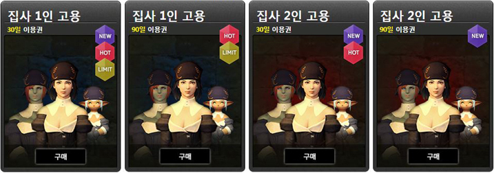 이처럼 집사 고용 인원을 선택해서 고용하기 때문에 '집사 1인 고용' 시 '집사셋'이 고용되는 점 참고해 주세요.
