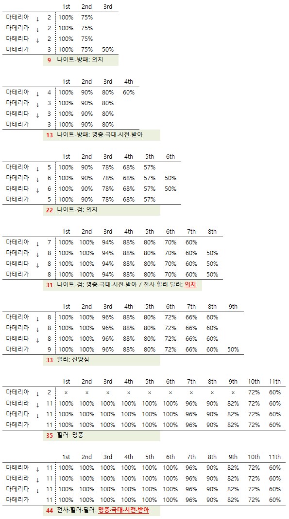 44능력치(명중,극대,시전,받아)의 11번째 전사확률 60%