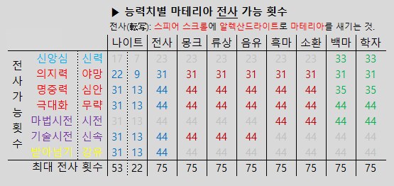 ⑤ 위와 같은 과정을 거쳐서 75개의 마테리아를 전사시킨 뒤,