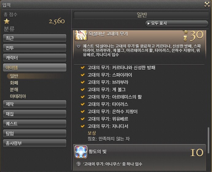 다시 업적창을 올려보니.. 절반이 되지 않습니다. 이제 2560점..