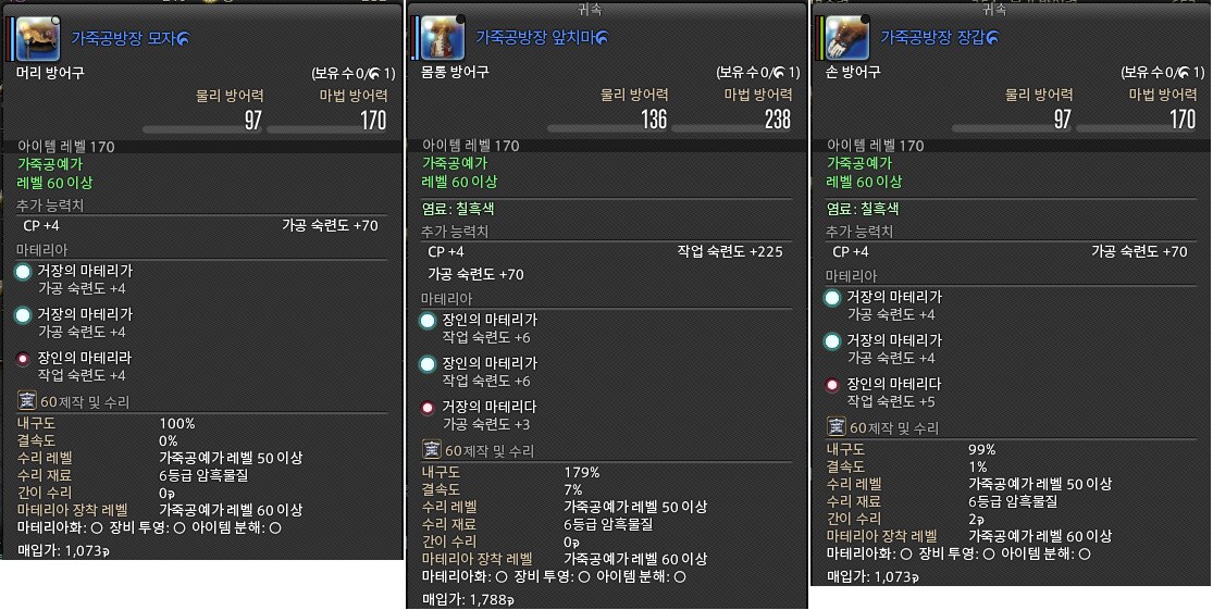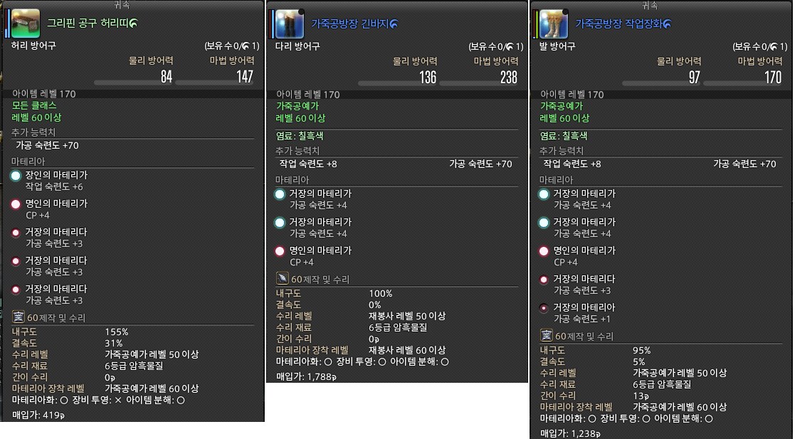 이외에 대장장이(주무기,보조무기), 재봉사(갑옷,보조무기), 목수(보조무기NQ크리 ㄷㄷ) 등을 제작해봤습니다