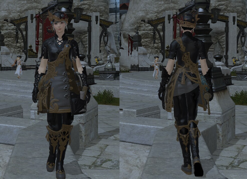 그런데 바지는 60레벨 공용 제작바지인 '키마이라 펠트 치마'를 칠흑색으로 염색해서 투영해 입으면