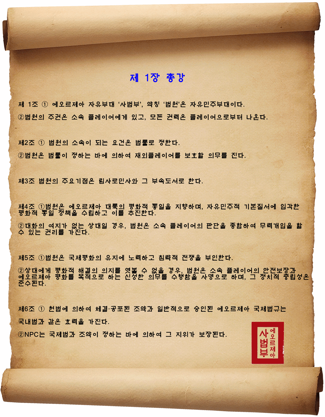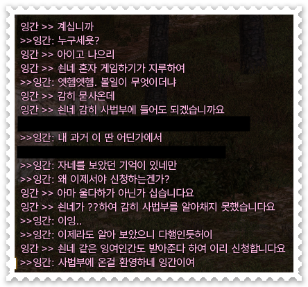 * [소개멘트] <사법부>, 약칭 <법원>은 바보같은 짓을 좋아합니다. 게임에서 일탈한 행위를 환영합니다. 기존 게임들의 길드와는 다른 멍청한 활동을 지향합니다. 자신이 멍청하고 바보같다고 생각되면 주저없이 가입하세요!