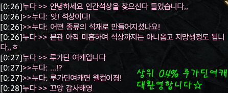 아침에도 접속해 있었는데 저녁에도 있는 석상의 일종으로 추정되시는 분. 환영합니다.