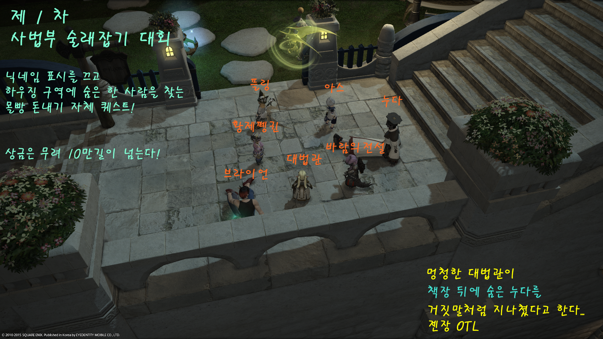 저희 길드는 길마의 직위와 전문지식(?)이 필요한 길드하우스 가드닝을 제외하고는 딱히 계급을 두지 않습니다.