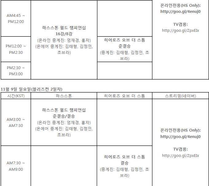 1) 블리즈컨 공식 스트림 & 각국 스트림 주소 종합: http://kr.battle.net/blizzcon/ko/tournaments/2014/heroes/