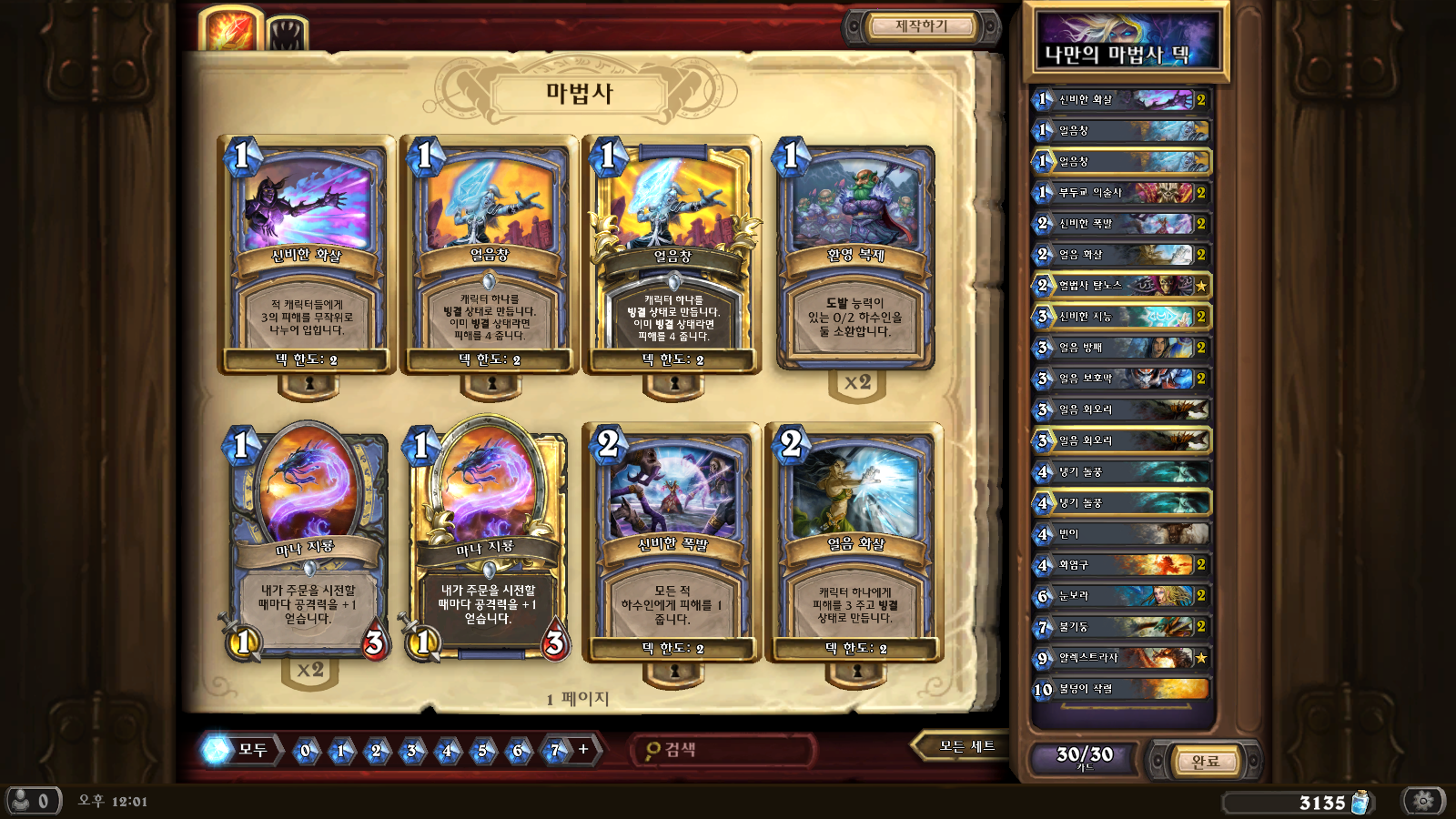 영웅모드 맥스나를 잡은 마법사덱입니다.