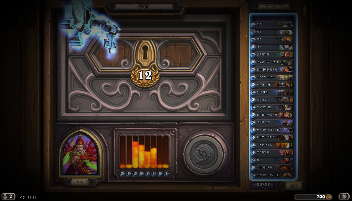 먼저 (1) 컨셉 덱의 가장 중요한 특징은 그 어떤 덱보다 가장 원사이드 하게 상대를 제압하는 덱이라는 점이고 그렇기 때문에 변수가 그리 많지 않게(상대가 전설을 가지고 있든 불기둥을 4장 가지고 있든) 12승에 가장 쉽게 도달할 수 있다.