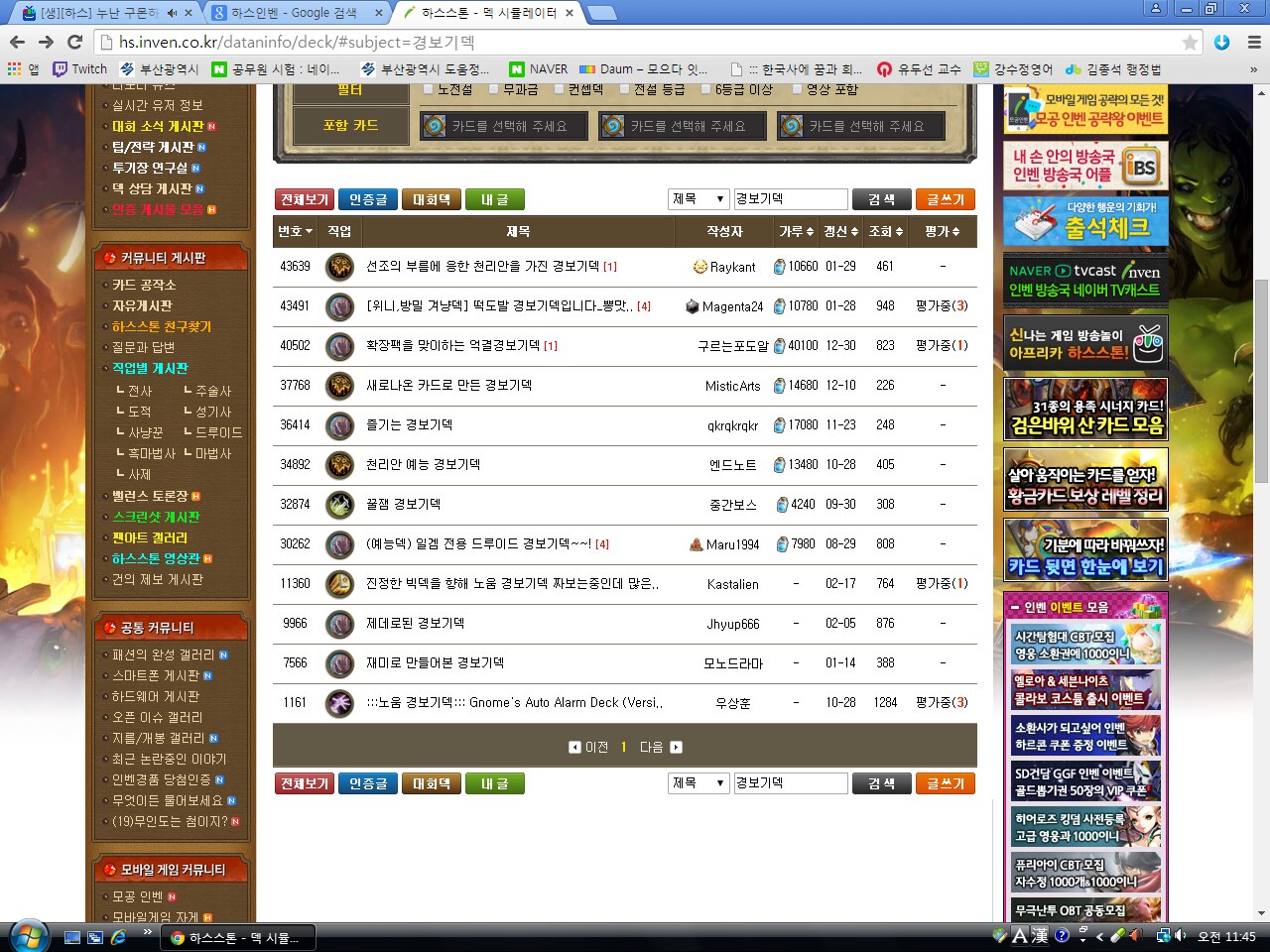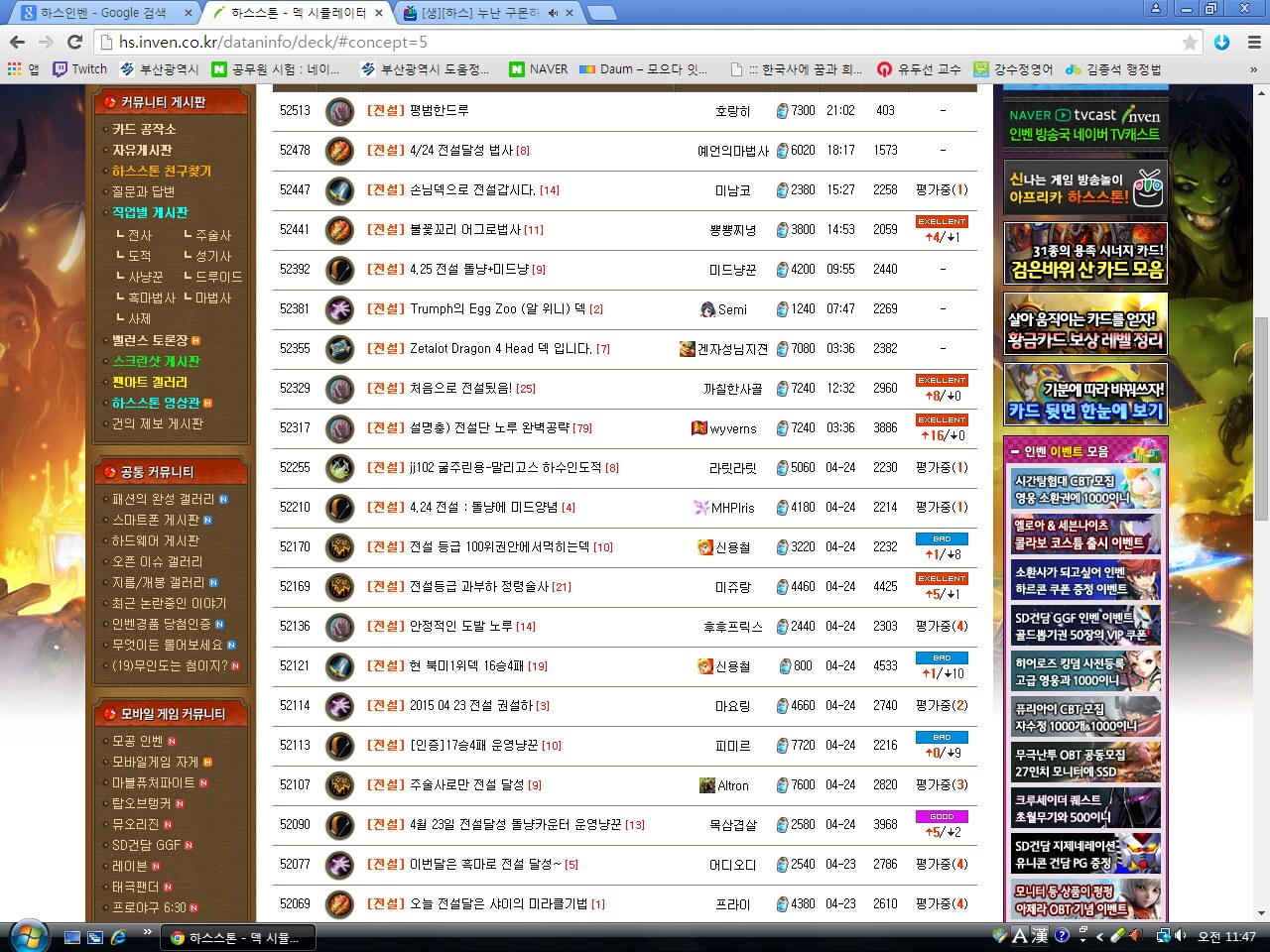 3. 랭크덱 : 현재의 메타의 흐름을 파악해서 최고의 영웅, 카드로 구성한 덱.(랭크게임에 적용하면서 벨런싱 함.)