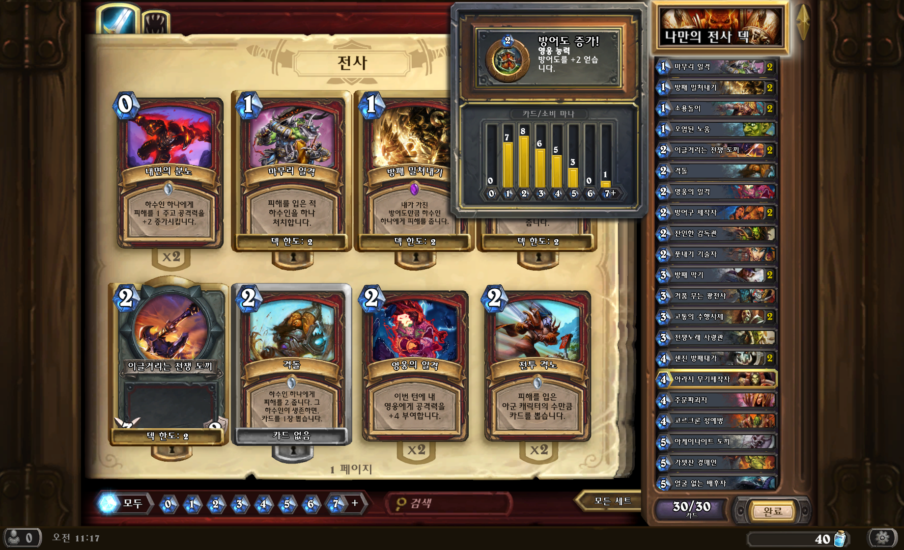 수행사제 2 방어구제작자+소용돌이로 방어력과 드로우를 동시에 먹을 수 있어서 괜찮았음