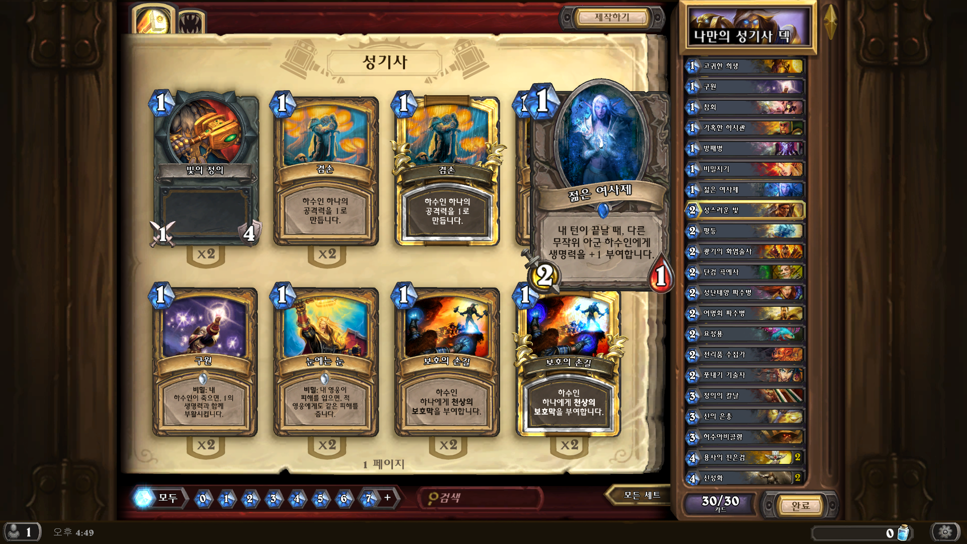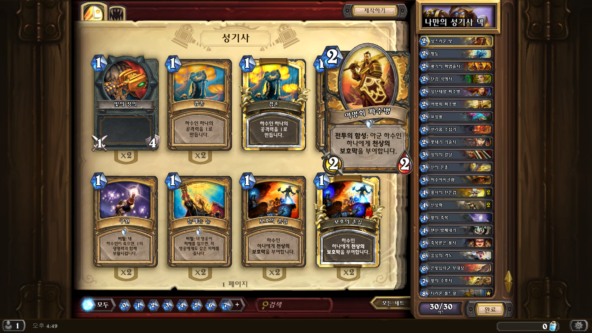 오염된노움1, 은빛십자군총사1, 젊은여사제1,화난닭1, 황금골보병2