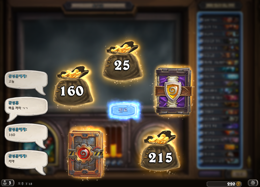 크으........보상 정말 완전 좋게떴네요. 보통 황금카드나 가루가 뜨는데 게다가 카드팩이 2개라니
