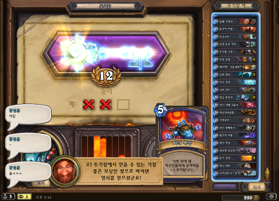 이야........오늘 투기장 최고기록을 갱신했네요 꽤나 기뻤습니다.