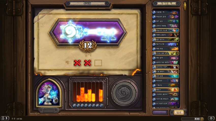 12승의 원인입니다. 덱 커브를 보고 불의 땅 차원문을 집지 말고, 보이는 족족 불의 땅 차원문을 집은 후에 덱 커브를 거기에 맞춰 가세요.