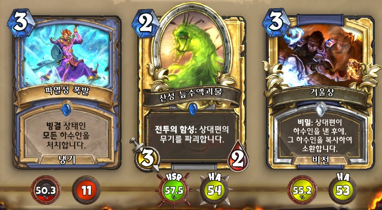 14. 법사 확팩 카드는 컨셉질이 심해서 투기장 지뢰가 많습니다. 산성 늪수액괴물 선택