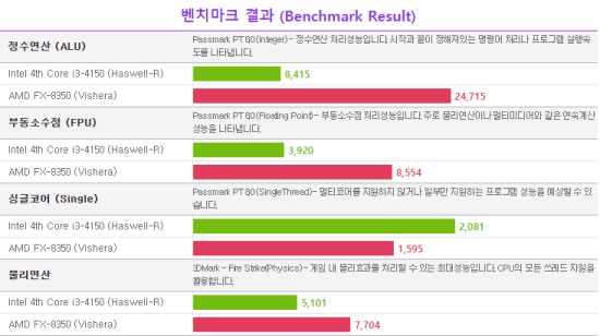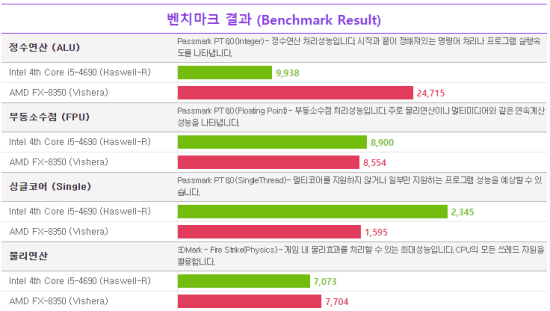 현재 메인이 되는 CPU를 놓고 볼때 1코어당 성능은 현재 인텔이 두배가까이 좋기때문이죠.