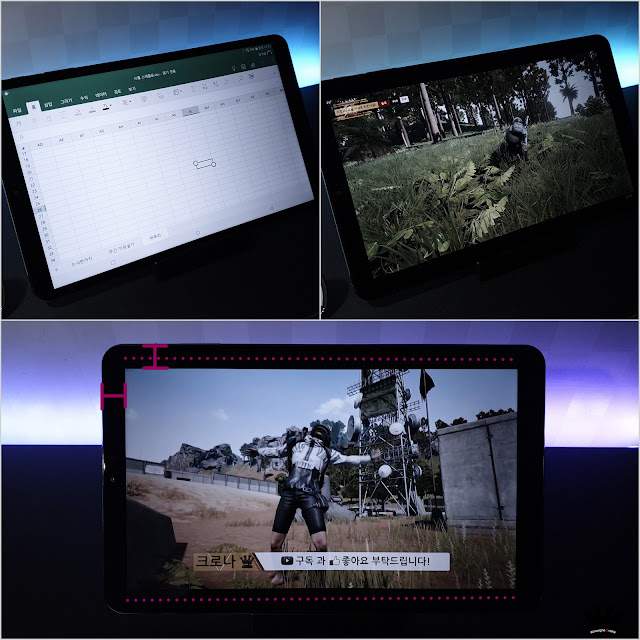▲ 더욱 재밌는 부분은, 앞서 상/하단과 좌/우측의 베젤 크기가 다르다고 말씀드렸는데요. 패드를 가로로 눕혀, 16:9 비율의 영상을 시청할 경우, 상단과 하단에 레터박스가 생겨, 각 베젤의 두께가 동일하게 제작된 것 같은 착각을 일으킵니다. 덕분에 몰입하는데 집중할 수 있고, 인테리어 소품이나 매장 광고용 디지털 액자 같은 느낌을 주기도 합니다.