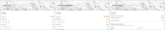▲ Sling Shot은 3,403점, Ice Storm은 30,099점, API Overhead는 각각 81,653점과 832,097점을 기록했습니다.