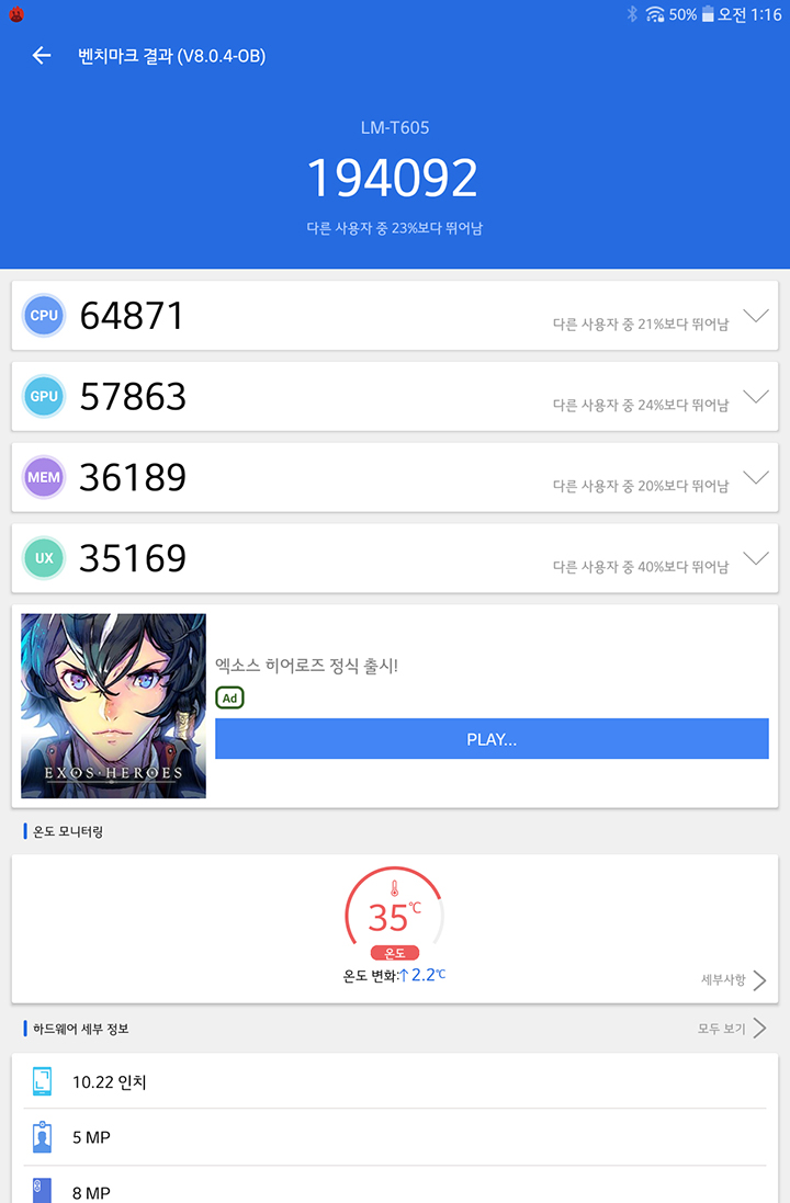 ▲ 모바일 프로세서의 벤치마크 프로그램으로 유명한, 안투투 벤치마크를 통해 프로세서의 성능을 측정해봤습니다.