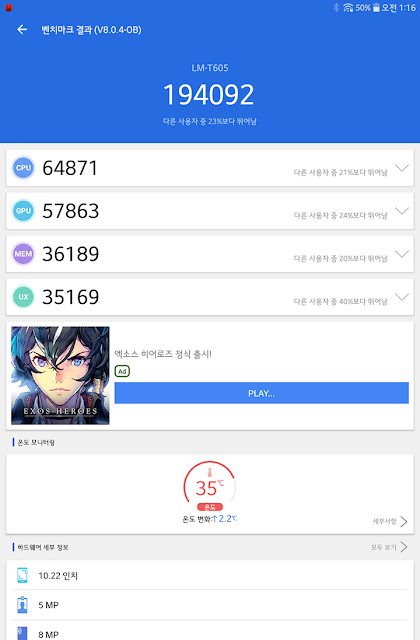 ▲ 이렇게 해서, LG전자 G Pad 5의 외형과 주요 특징을 살펴봤습니다. 보급형 가격대에 속하는 G패드5는, 아이패드 7세대의 성능과 거의 근접할 수준으로 끌어올린 성능에, 특히 10.1인치의 큰 화면과, WUXGA 해상도의 IPS 패널이 탑재되어, 영상 시청 및 문서 작업으로 제격입니다. 해당 제품은 WiFi 전용 모델로, LTE를 지원하는 LM-T600 모델 대비 3만원 정도 저렴한 이점이 있어, 이동 중에 사용하는 것보다는, 실내 혹은 실외의 공간에서 활용하기 좋은 제품입니다. 패키지 기본 구성에서, 전용 터치팬을 제공하지 않는 점이 다소 아쉽게 다가왔으며, 32GB의 내장 저장 공간은 사용자마다 차이가 있겠지만, 많은 앱과 자료를 보관하는 저로서는 조금 부족하게 느껴졌고, 64GB 이상은 되어야 더욱 쾌적하게 사용할 수 있을 것 같습니다. 다음 시간에는 WiFi 전용 모델인 G패드5 LM-T605를 가지고, 어떻게 활용할 수 있는지. 또, 기능을 활용하면서 아쉬운 점은 무엇인지 파악해보는 시간을 가져보겠습니다.