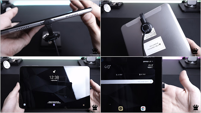 ▲ 또한, 아이디어 상품을 사용하면, 고속 충전을 진행하면서도, 태블릿 조작에 전혀 지장 없이 사용할 수도 있기 때문에, 하루 종일 자유롭게 사용할 수 있고, 거치대를 활용해 더욱 깔끔하게 영상을 시청할 수도 있습니다.